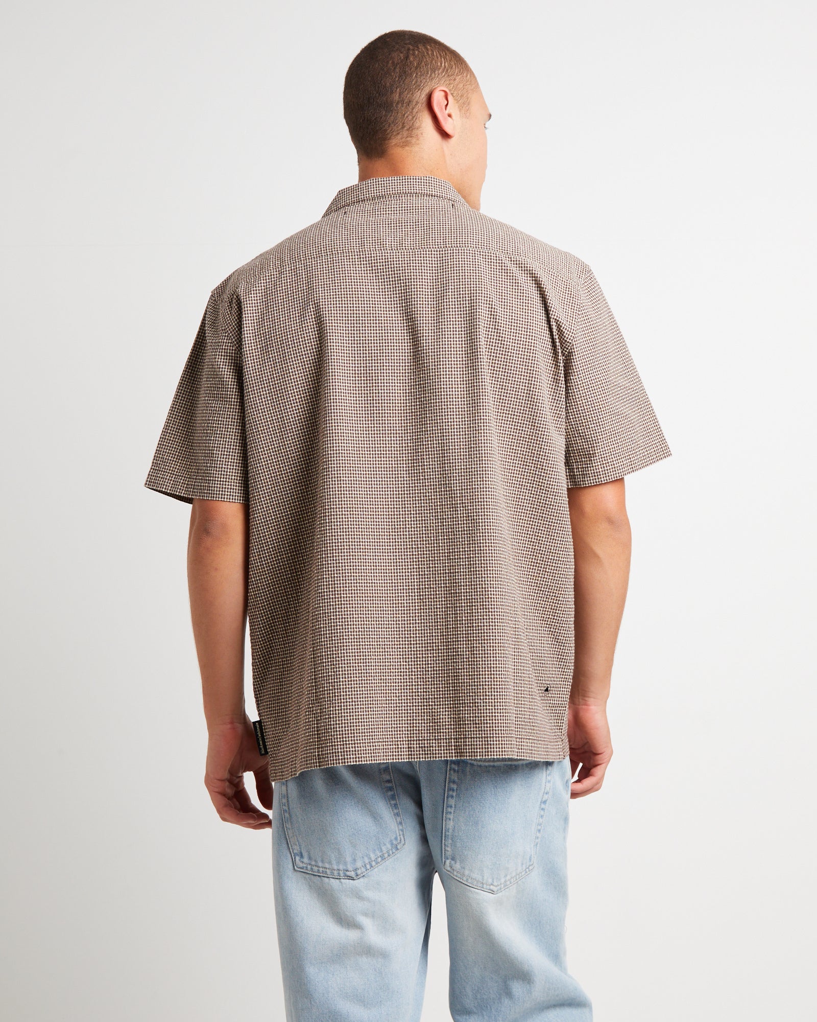 Aura Check Short Sleeve Resort Shirt in Brown