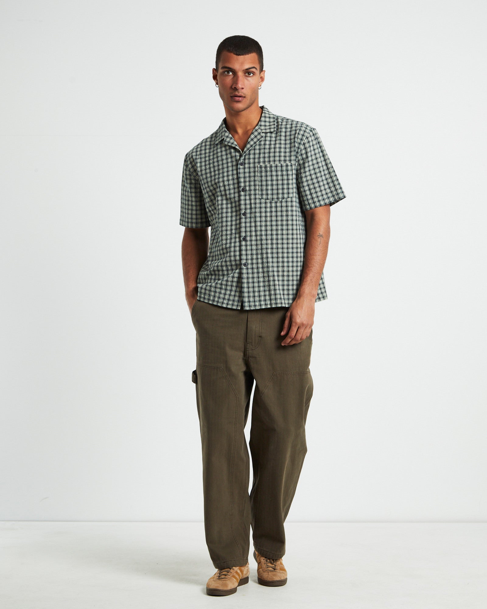 Aura Check Short Sleeve Shirt Grey