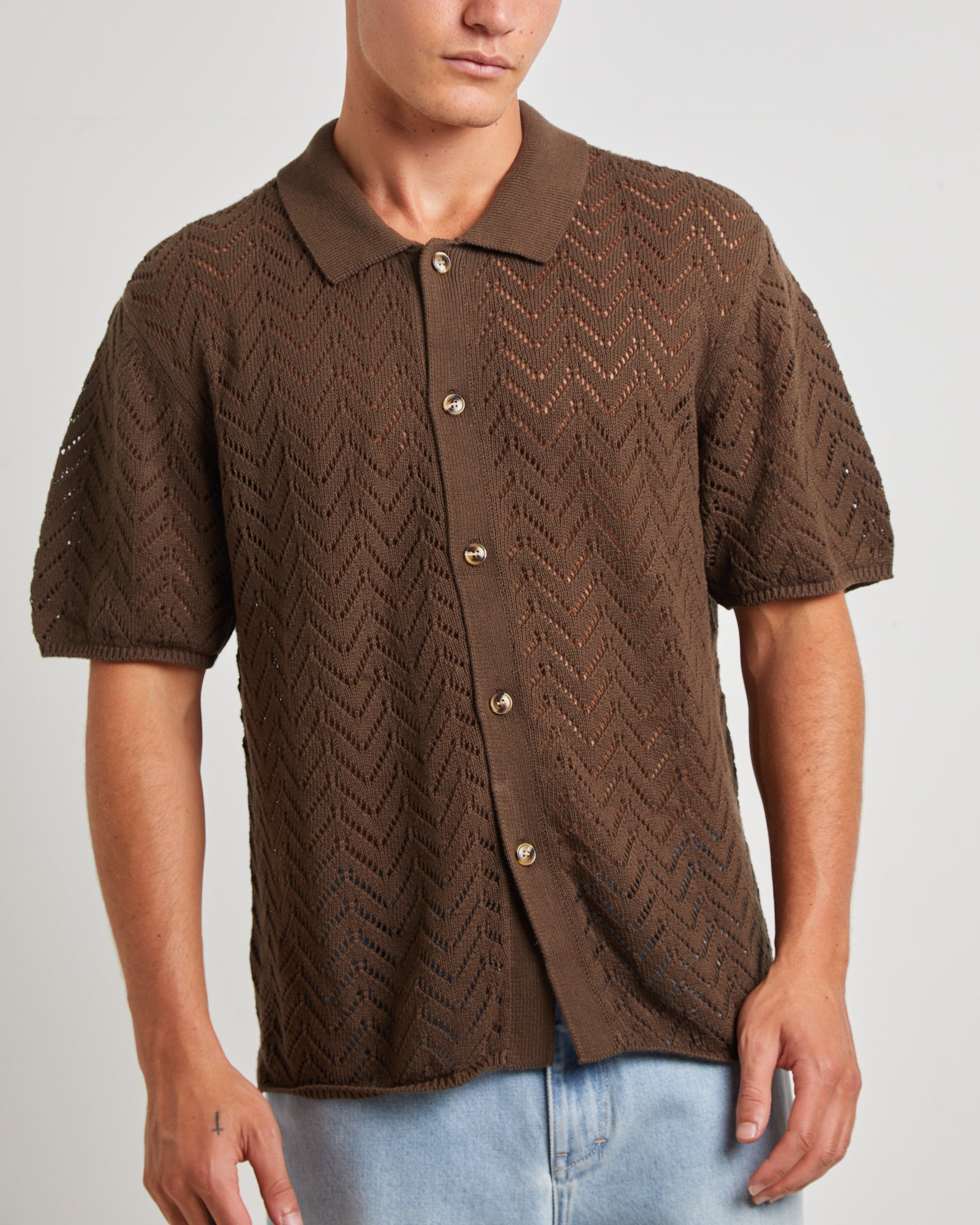 Blaxland Knit Short Sleeve Shirt in Brown