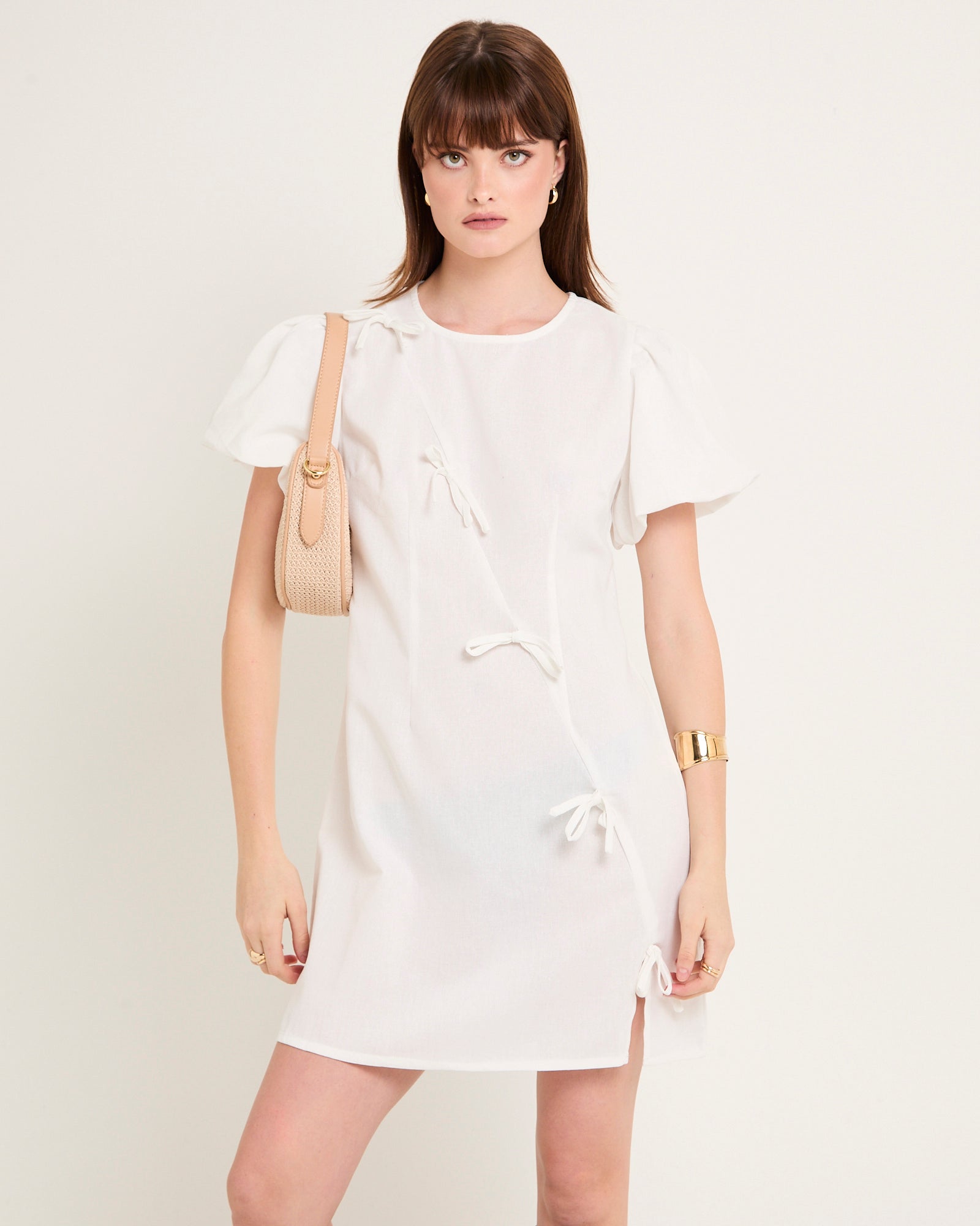 Bow Cap Sleeve Mini Dress