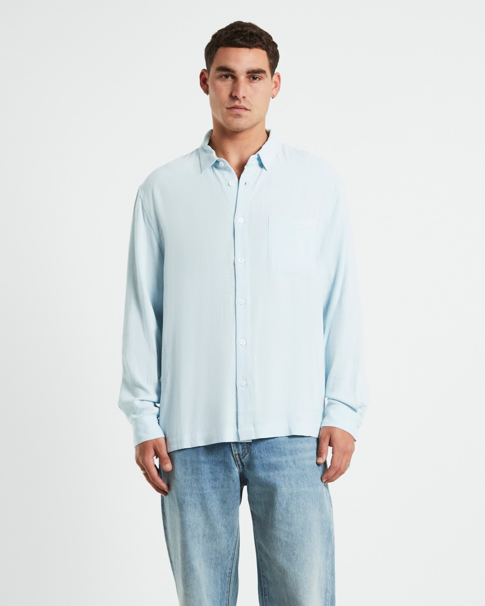 Harrison Linen Long Sleeve Shirt in Sky Blue