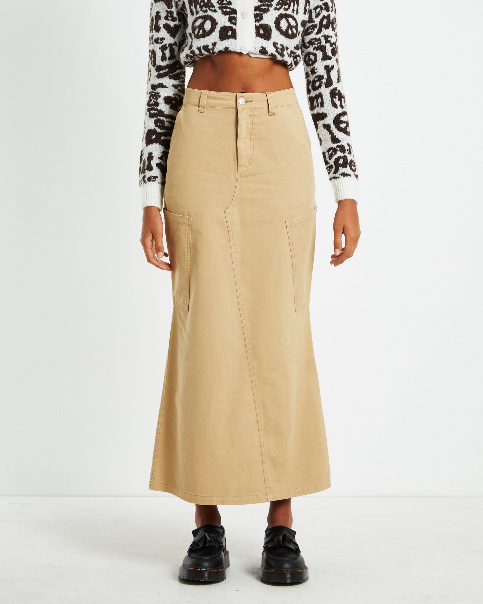 Maxi Canvas Cargo Denim Skirt